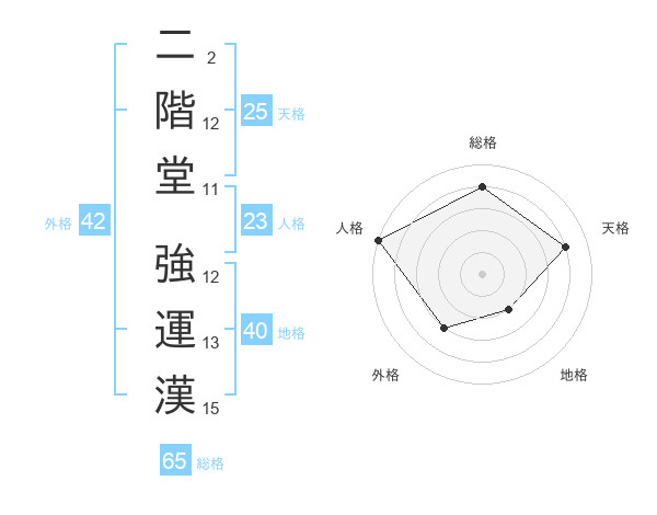 二階堂 強運漢さんを姓名の画数から五運を鑑定