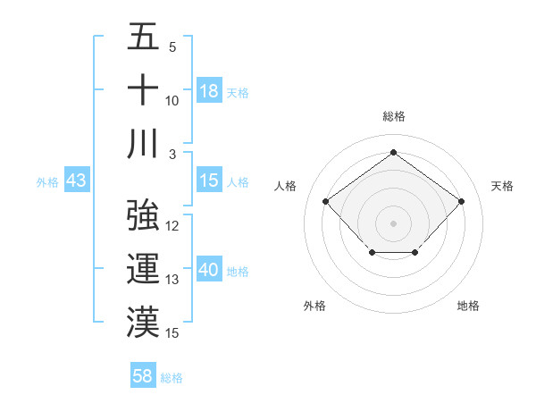 五十川 強運漢さんを姓名の画数から五運を鑑定