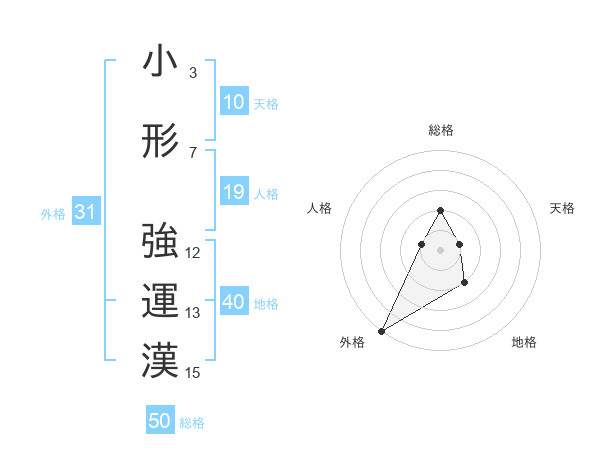 小形 強運漢さんを姓名の画数から五運を鑑定
