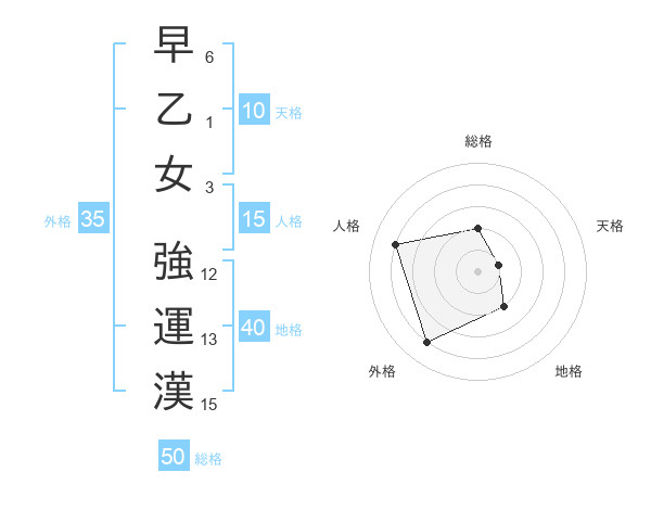 早乙女 強運漢さんを姓名の画数から五運を鑑定