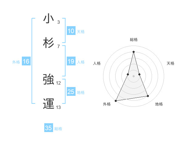 小杉 強運さんの地格は25画の4点!
