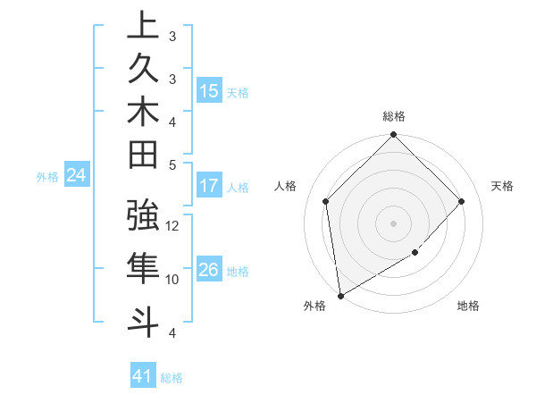 上久木田 強隼斗さんの総格は41画の5点!