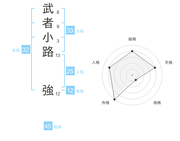 武者小路 強さんの総格は45画の4点!