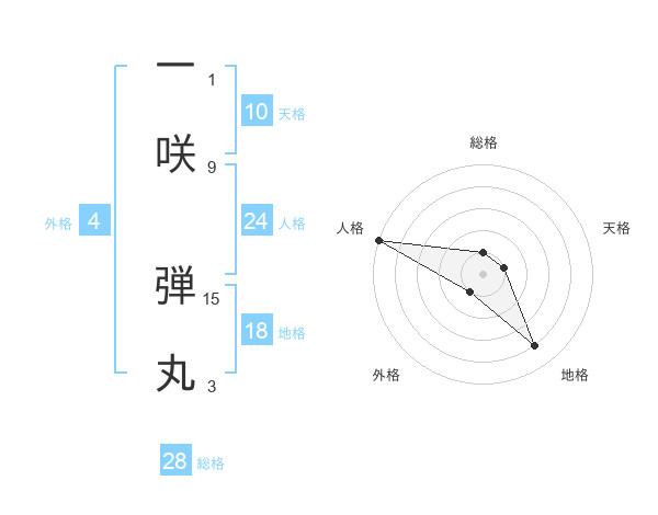 一咲 弾丸さんの総格は28画の1点!