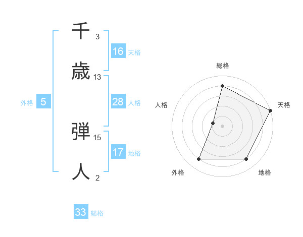 千歳 弾人さんの総格は33画の4点!