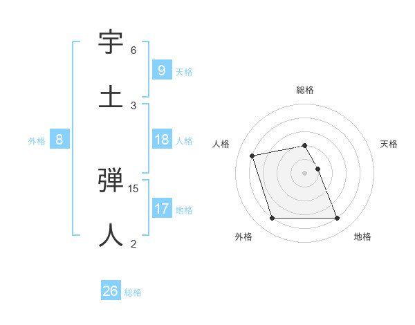 宇土 弾人さんを姓名の画数から五運を鑑定