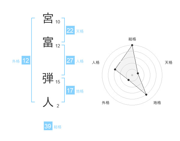 宮富 弾人さんの総格は39画の5点!