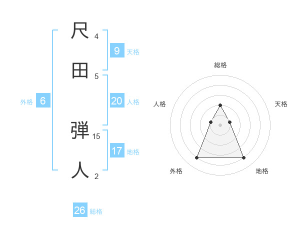 尺田 弾人さんを姓名の画数から五運を鑑定