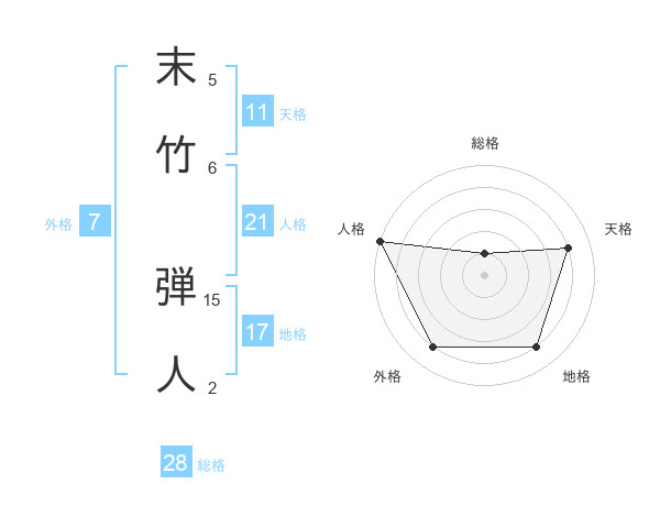 末竹 弾人さんを姓名の画数から五運を鑑定