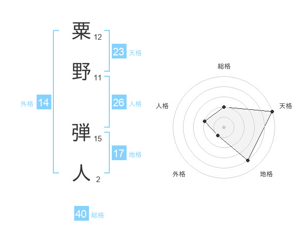 粟野 弾人さんを姓名の画数から五運を鑑定