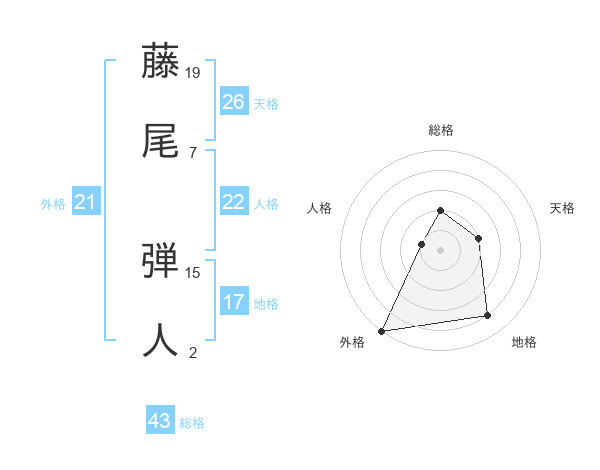 藤尾 弾人さんの天格は26画の2点!