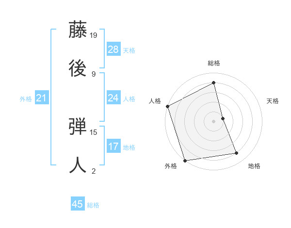藤後 弾人さんの外格は21画の5点!