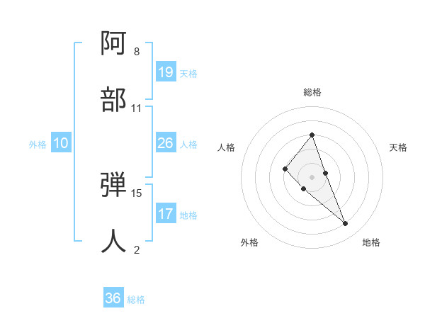 阿部 弾人さんの天格は19画の1点!