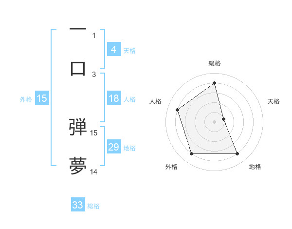一口 弾夢さんを姓名の画数から五運を鑑定