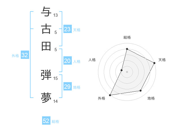 与古田 弾夢さんを姓名の画数から五運を鑑定