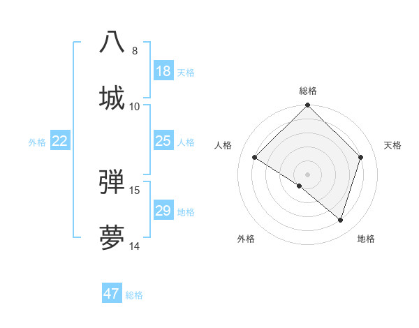 八城 弾夢さんの総格は47画の5点!