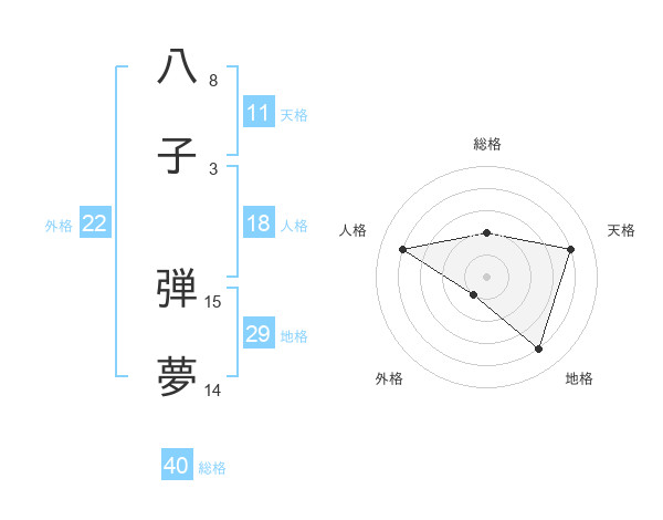 八子 弾夢さんを姓名の画数から五運を鑑定