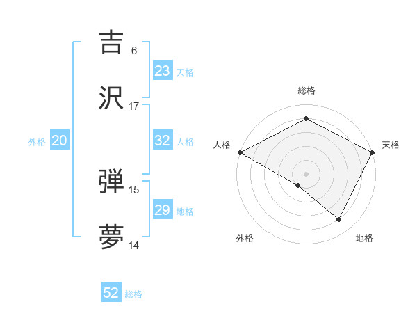 吉沢 弾夢さんの総格は52画の4点!