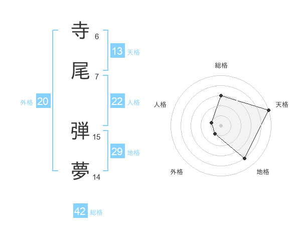 寺尾 弾夢さんを姓名の画数から五運を鑑定