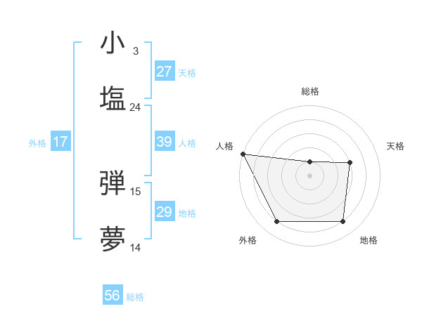 小塩 弾夢さんを姓名の画数から五運を鑑定