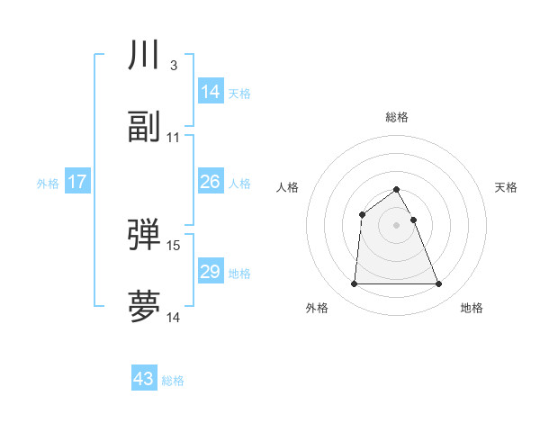 川副 弾夢さんの外格は17画の4点!