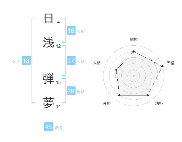 日浅 弾夢さんを姓名の画数から五運を鑑定