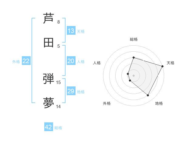 芦田 弾夢さんの天格は13画の5点!
