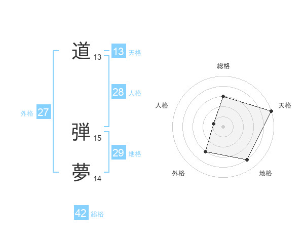 道 弾夢さんの天格は13画の5点!