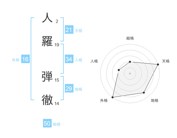 人羅 弾徹さんの天格は21画の5点!