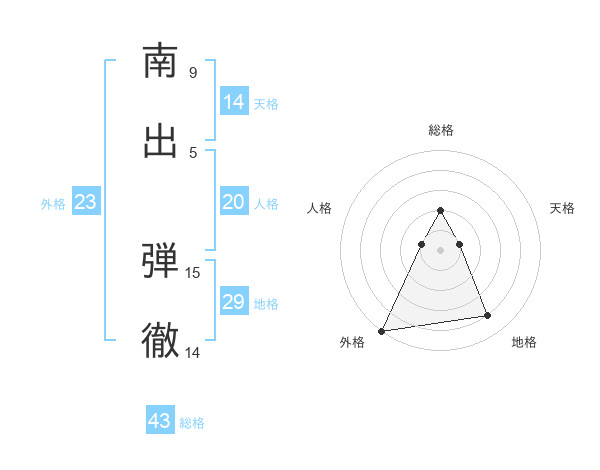 南出 弾徹さんを姓名の画数から五運を鑑定