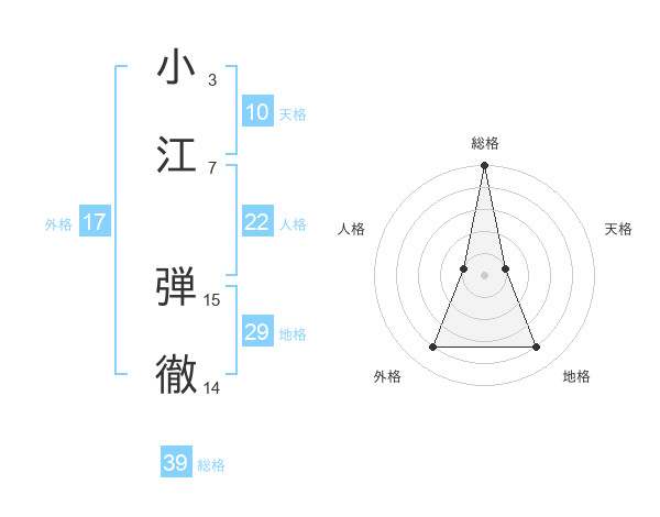 小江 弾徹さんを姓名の画数から五運を鑑定