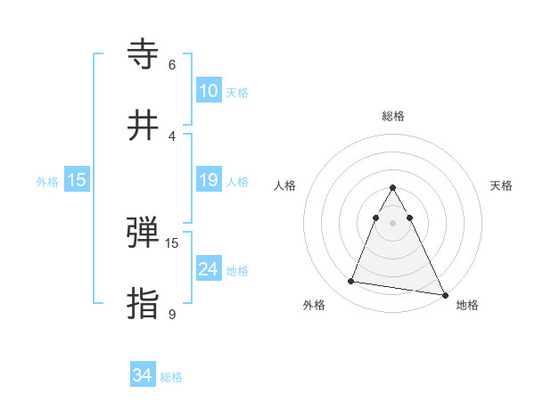 寺井 弾指さんの総格は34画の2点!