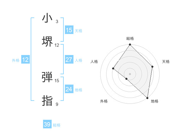 小堺 弾指さんを姓名の画数から五運を鑑定