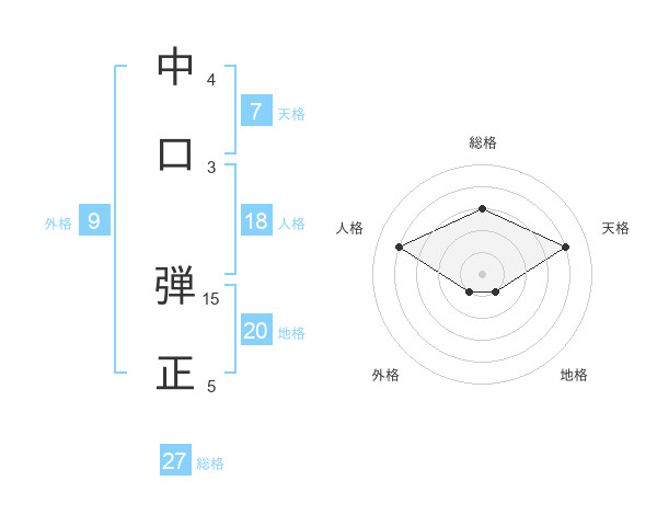 中口 弾正さんの総格は27画の3点!