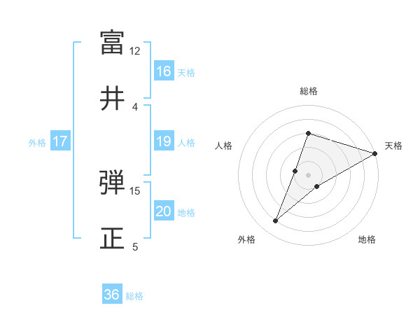 富井 弾正さんの天格は16画の5点!