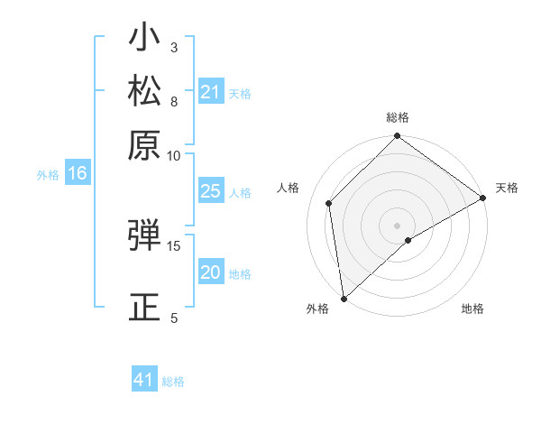小松原 弾正さんを姓名の画数から五運を鑑定