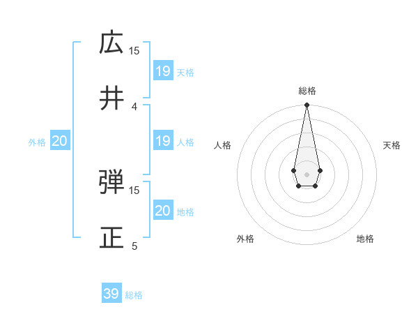 広井 弾正さんの地格は20画の1点!