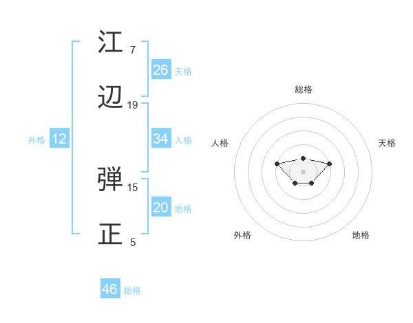 江辺 弾正さんの総格は46画の1点!