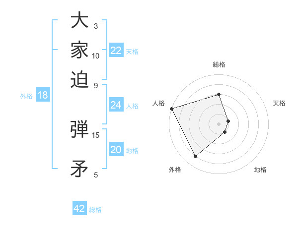 大家迫 弾矛さんを姓名の画数から五運を鑑定