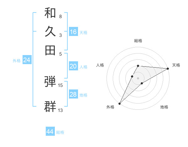 和久田 弾群さんの天格は16画の5点!