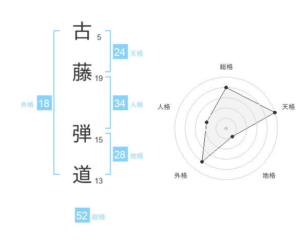 古藤 弾道さんの天格は24画の5点!