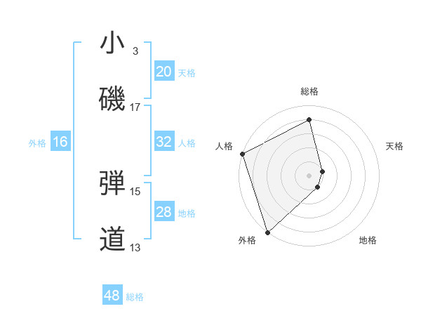小磯 弾道さんの天格は20画の1点!