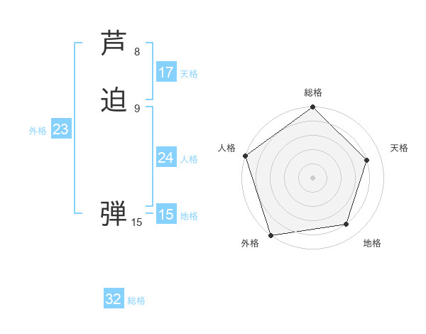 芦迫 弾さんの総格は32画の5点!