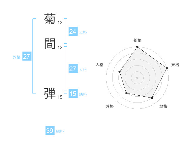 菊間 弾さんの天格は24画の5点!