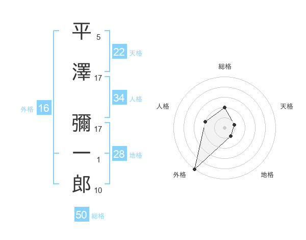 平澤 彌一郎さんの総格は50画の2点!