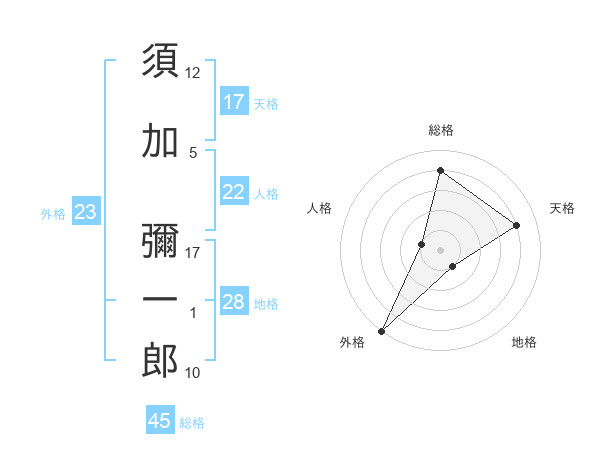 須加 彌一郎さんの外格は23画の5点!