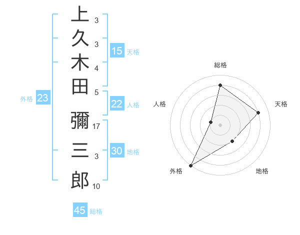 上久木田 彌三郎さんを姓名の画数から五運を鑑定