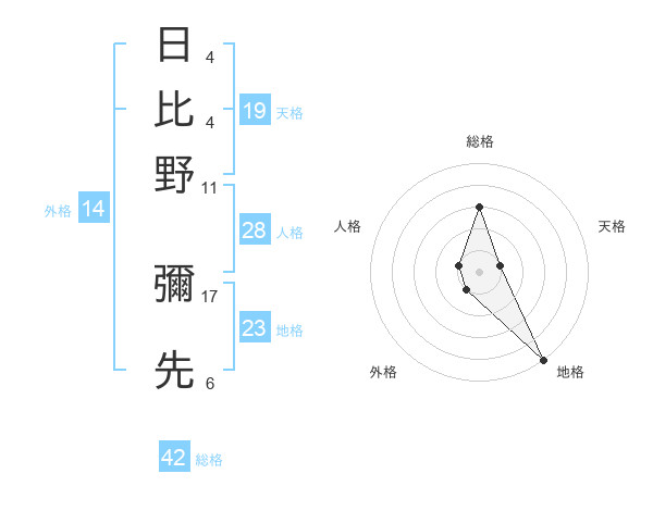 日比野 彌先さんを姓名の画数から五運を鑑定