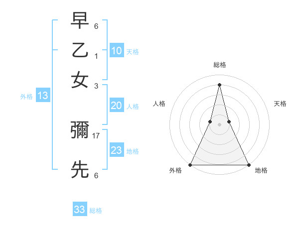 早乙女 彌先さんの総格は33画の4点!