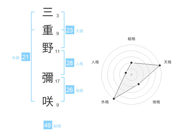 三重野 彌咲さんの外格は21画の5点!